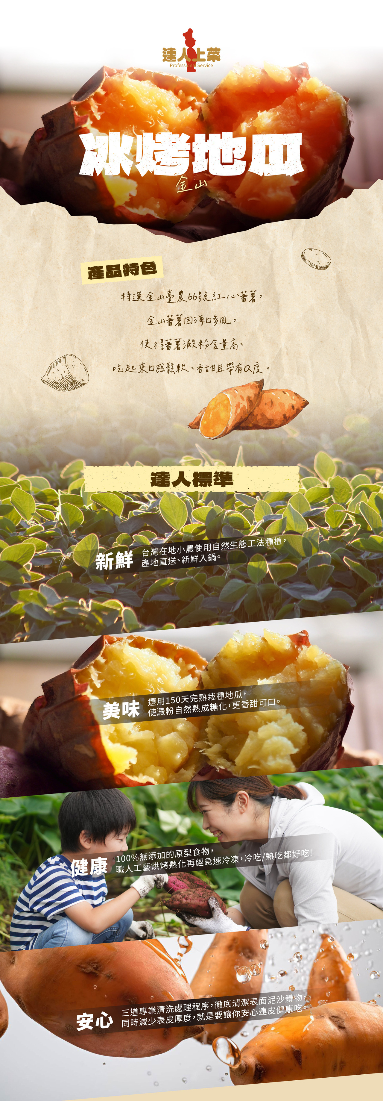 特選金山臺農66號紅心蕃薯,金山蕃薯因海口多風,使得番薯澱粉含量高、吃起來口感鬆軟、香甜且帶有Q度。