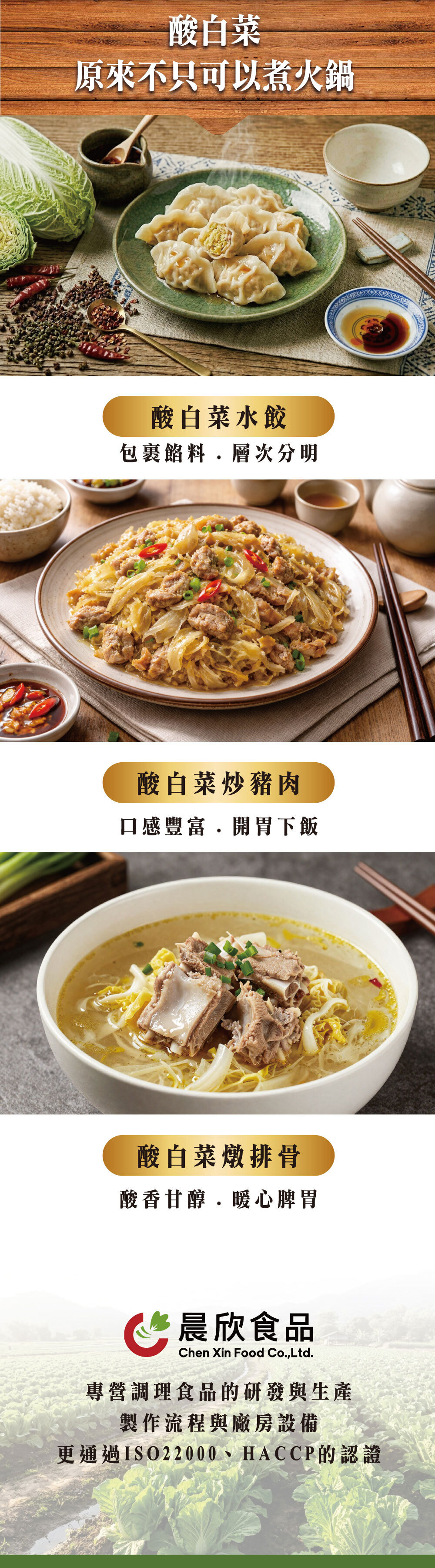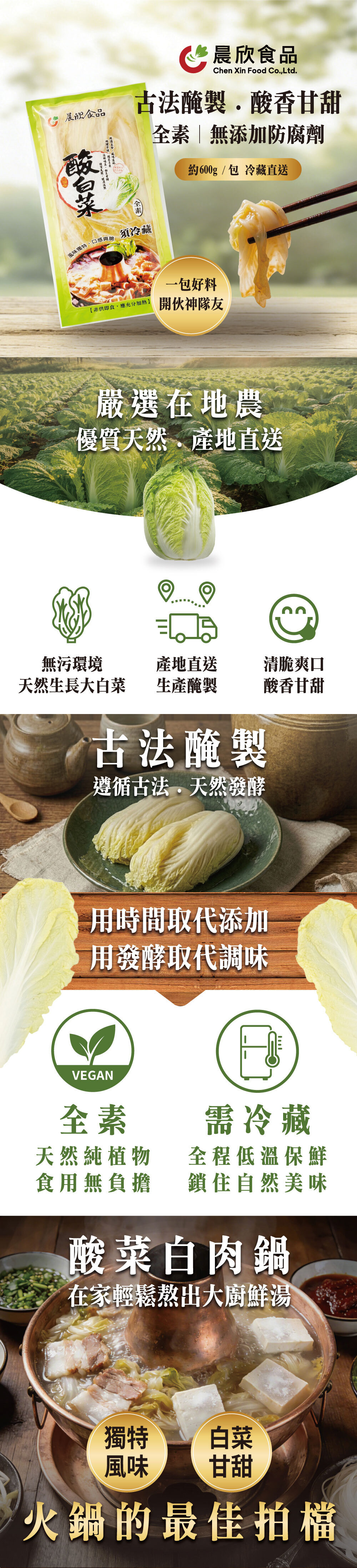 精釀美食、風味道地 料理方便、輕鬆享受 湯鮮味美、白菜甘甜 風味獨特、口感爽脆 優質天然、健康滿點