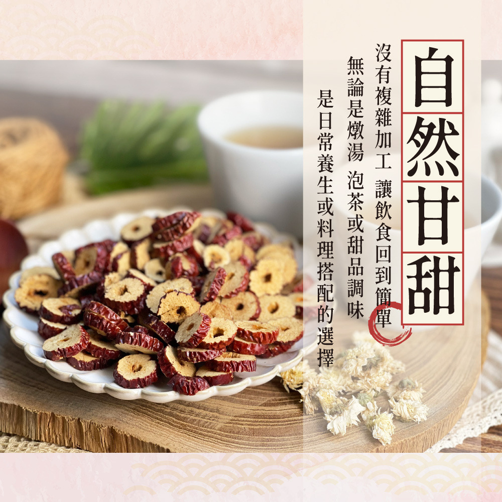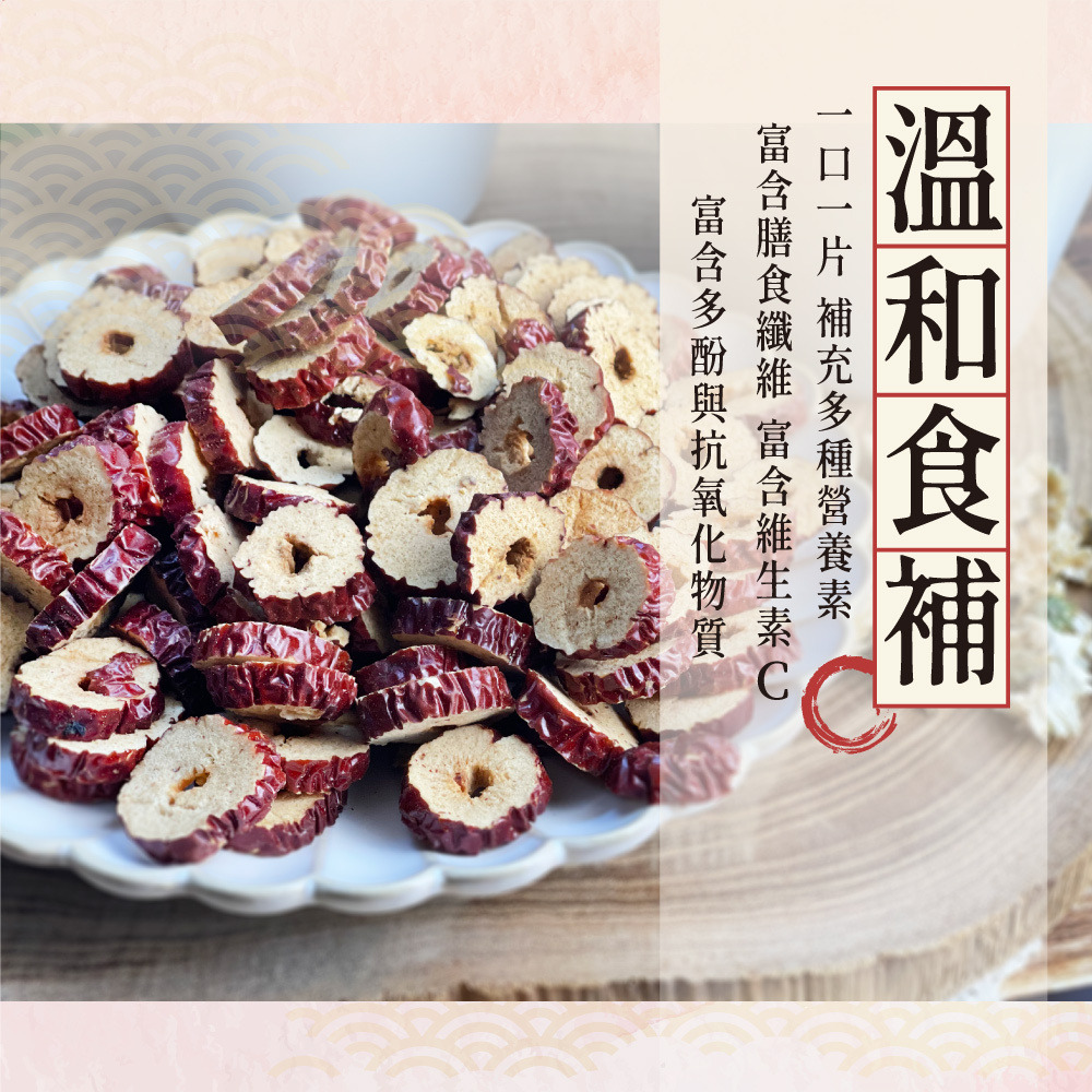 一片片紅棗切片,濃郁果香、甘甜回味,經檢驗安全無添加,開封即食,隨時補充元氣