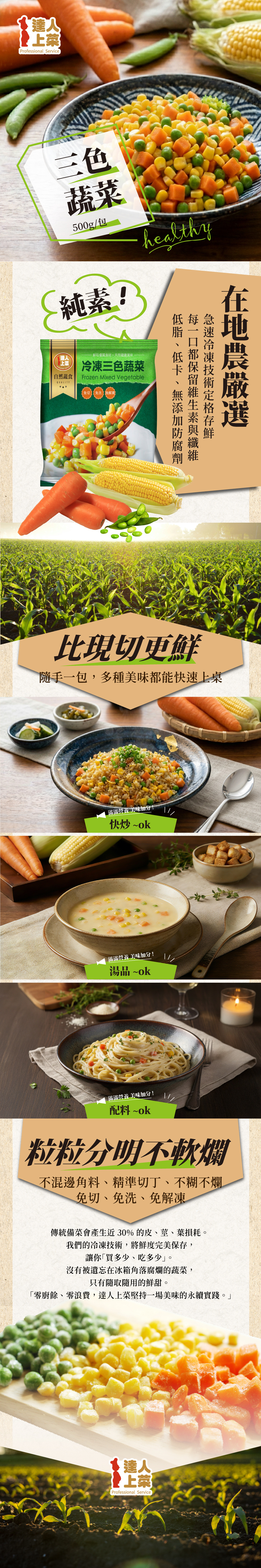 【達人上菜】冷凍三色蔬菜 500g《冷凍》
