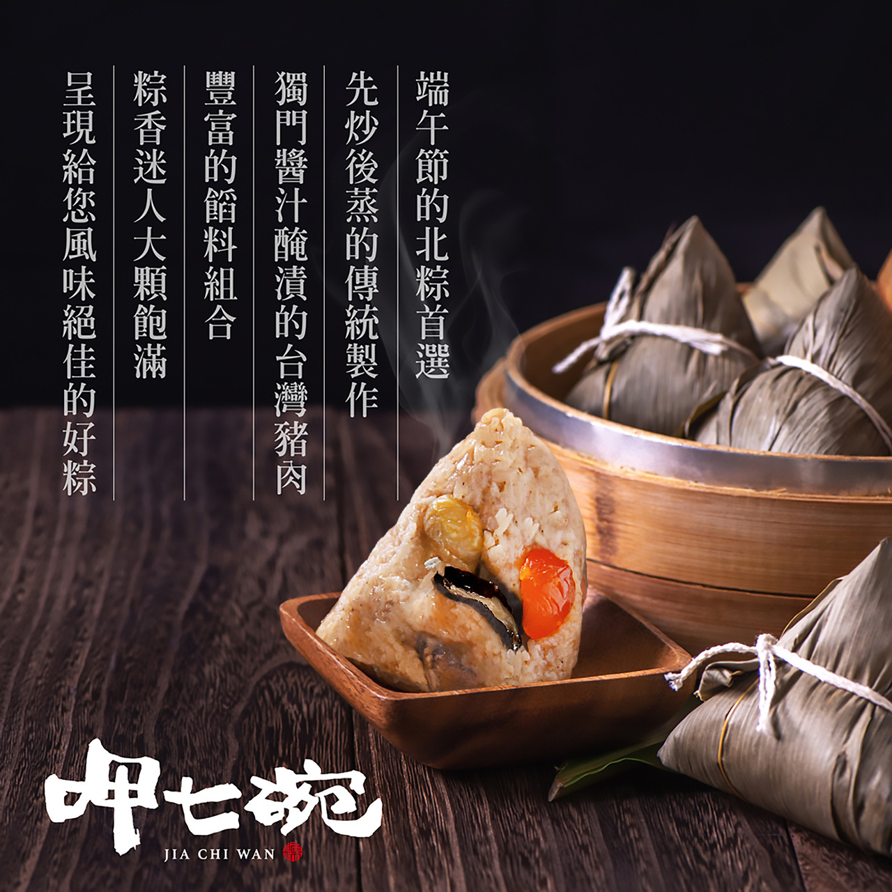 採用先炒後蒸的傳統工序,將食材香氣層層鎖住,保留北部粽獨特的Q彈米香與濃厚滋味,重現記憶中的家鄉好味道